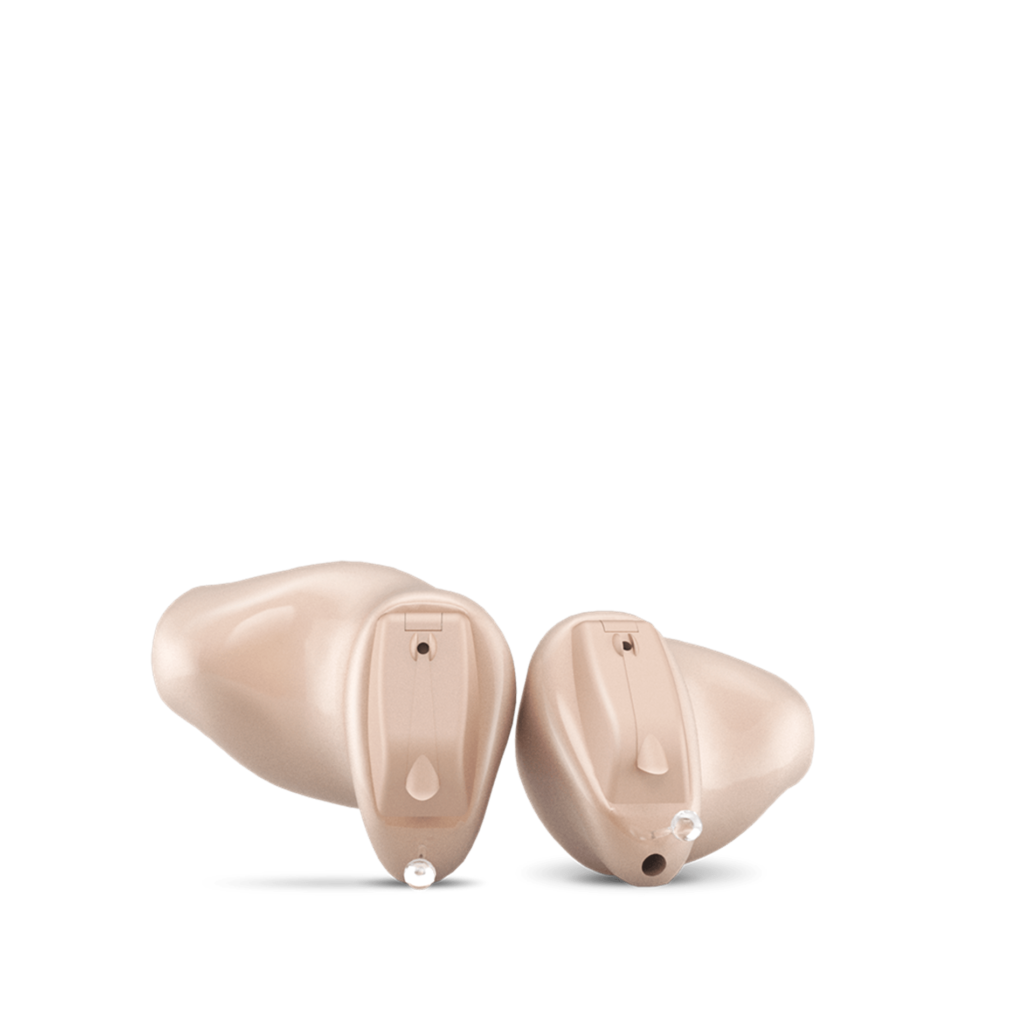 Estos audífonos son uno de los modelos de audífonos más pequeños del mercado. Utilizan la forma natural del oído para localizar el sonido. Una carcasa hecha a medida se adapta profundamente en los canales auditivos, lo que lo convierte en un audífono prácticamente invisible.